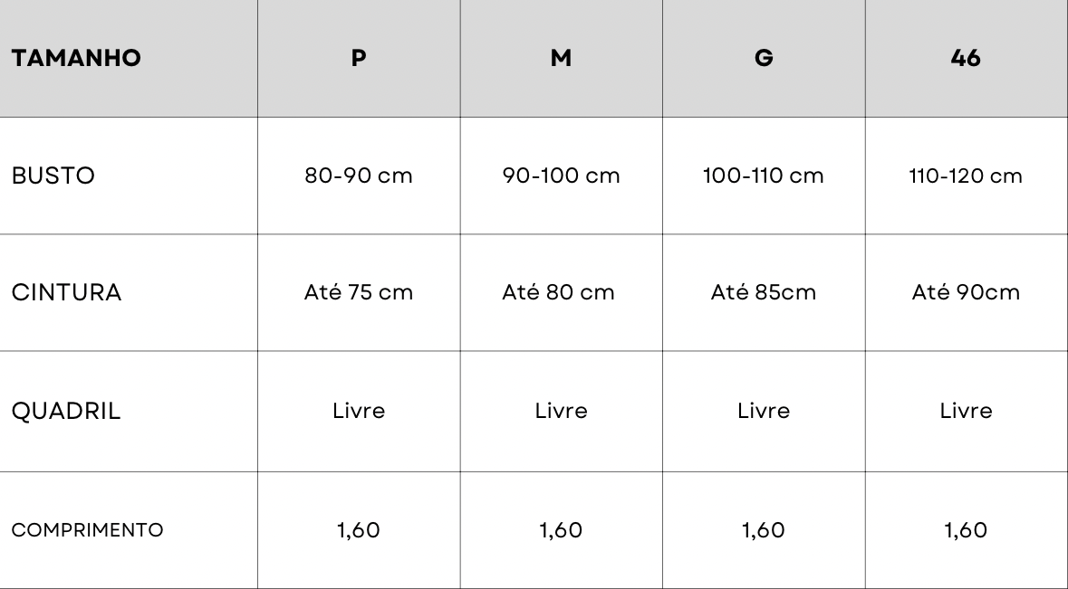 Tabela de Medidas