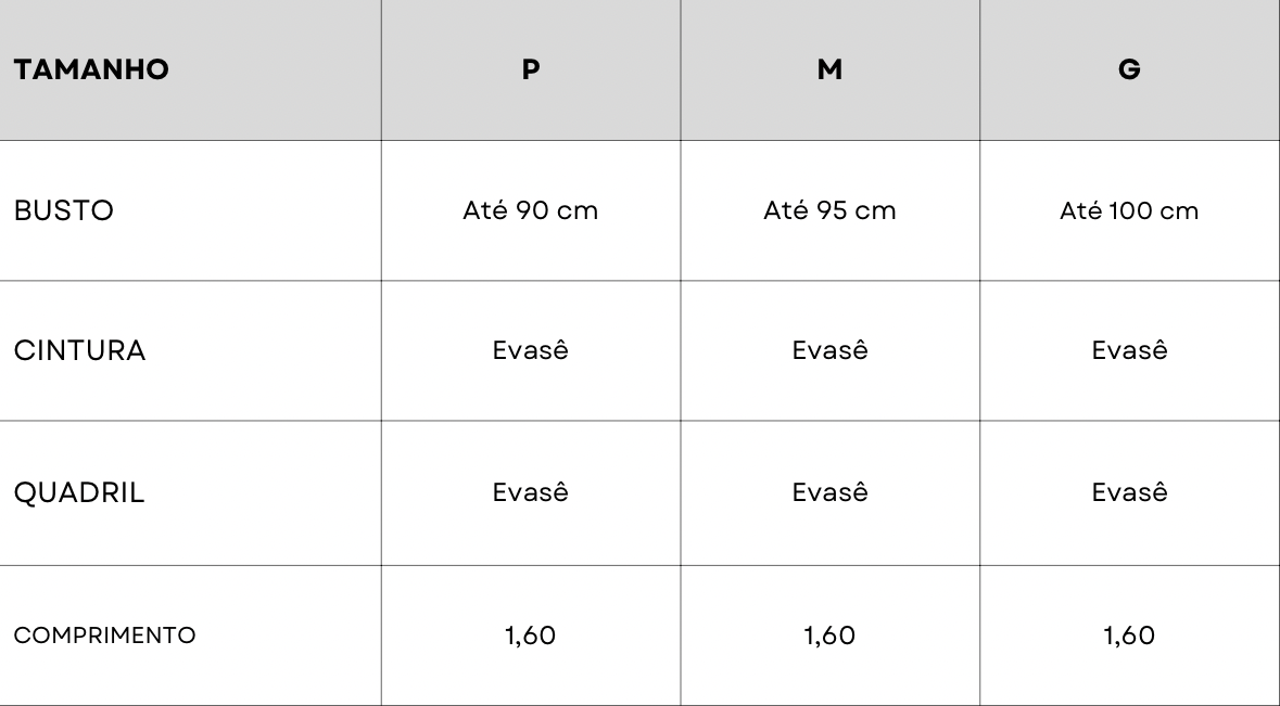 Tabela de Medidas