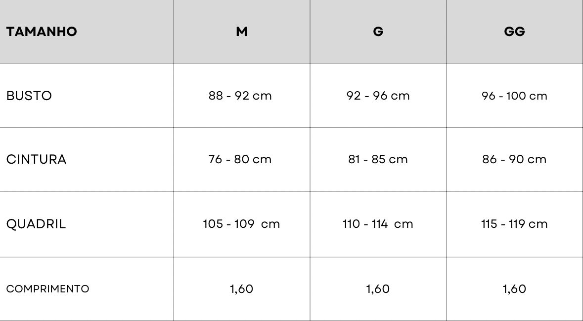 Tabela de Medidas