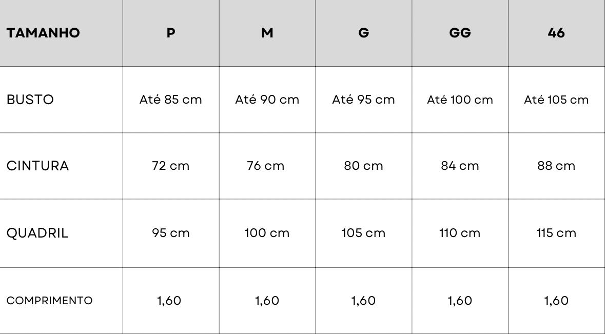 Tabela de Medidas